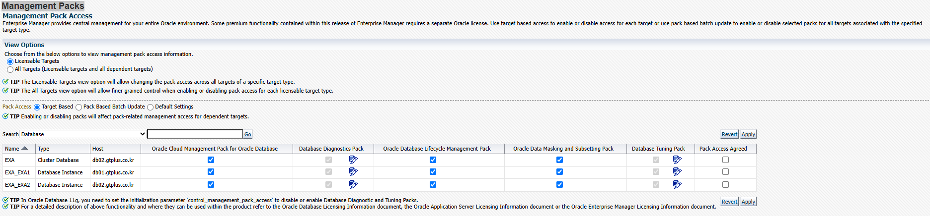 - Enterprise Manager Cloud Control 라이센스 문서 URL