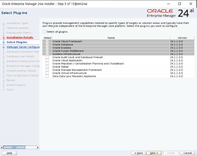 Plug-in 선택한 후, [Next >] 선택 (여기서는 Exadata 기준의 Plug-in 선택)