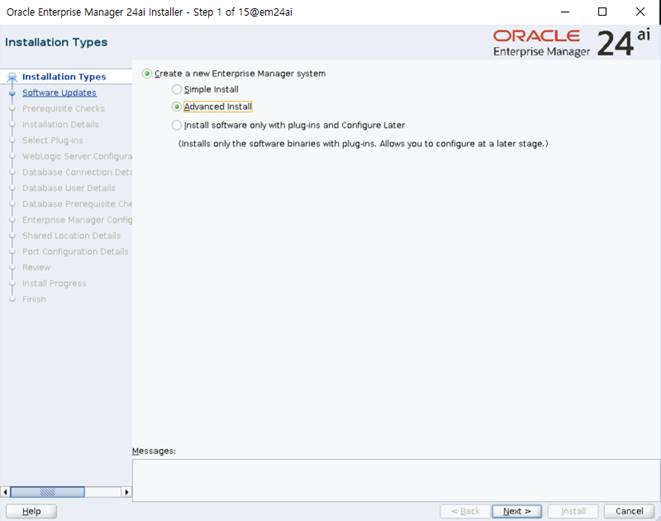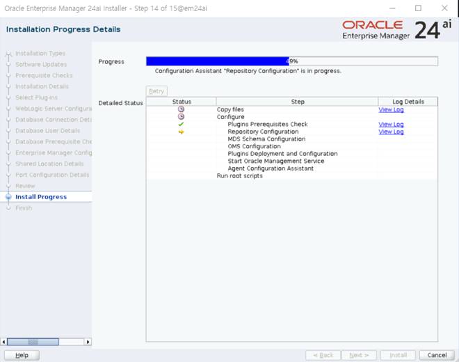 Repository DB 가 준비된 상태에서 임치 위치에 모든 설치화일을 올리고 em24100_linux64.bin 을 실행한다. X환경이 준비되어야 한다.