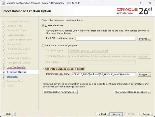 Database Configuration Assistant when a database is created