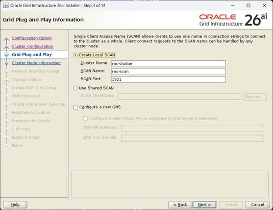 [Cluster Name, SCAN Name 지정후, Next]
