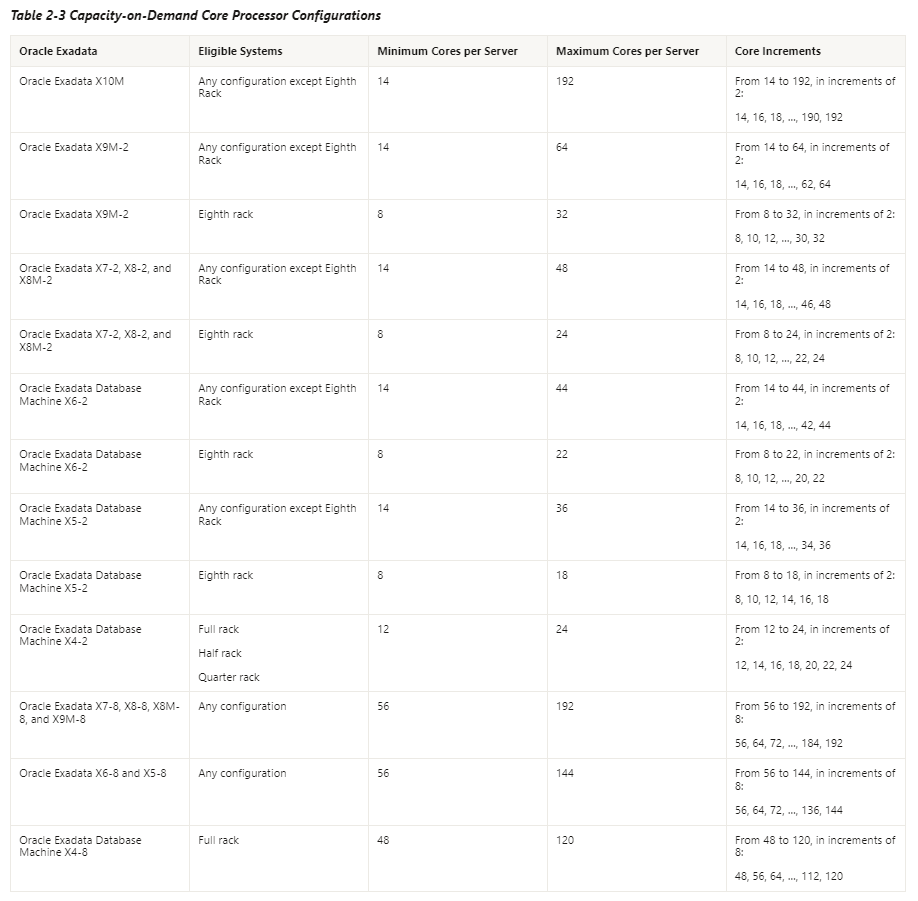 -> Exadata 모델에 따라 Minimum 수량과 Maximum 수량이 있으므로 사전확인 필요