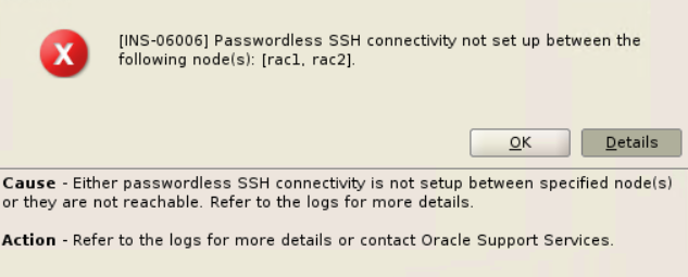 [INS-06006] Passwordless SSH connectivity not set up between the following node(s)