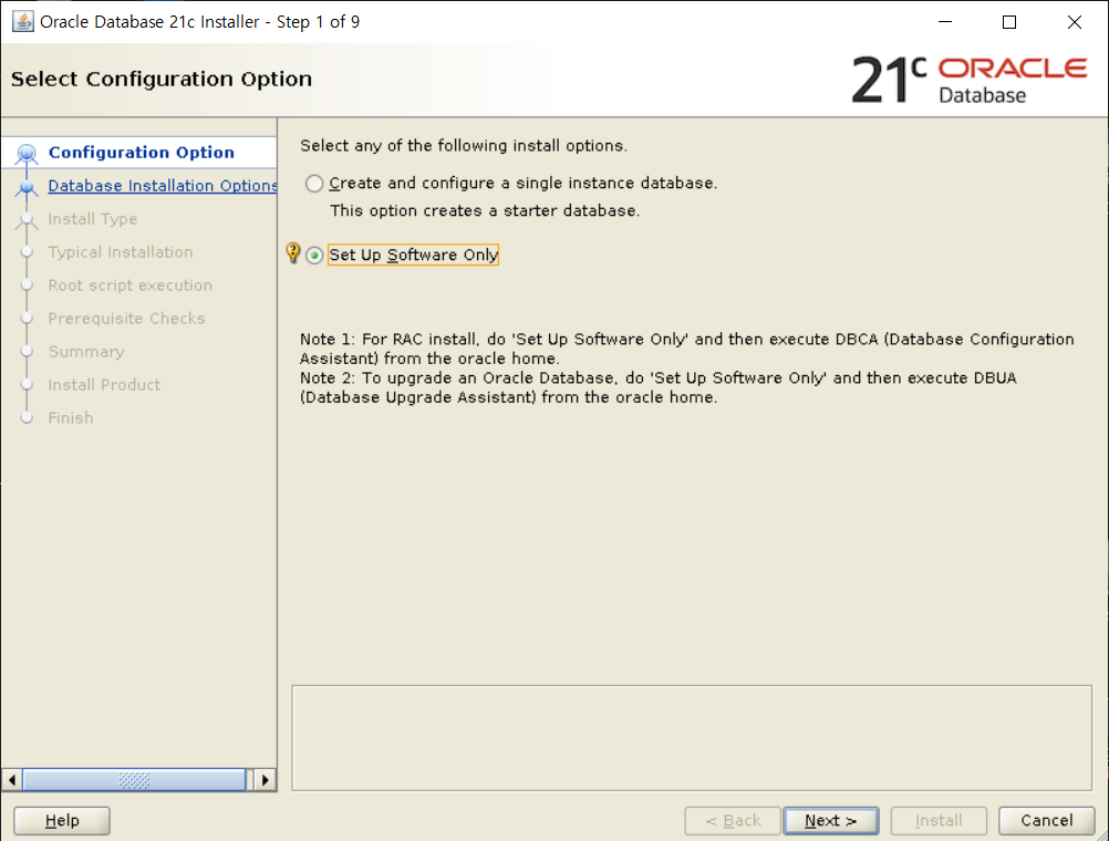=> 21c는 read-only home이 Default 이므로 disable 했을 경우는 Configuration 화일 및 listener.ora 화일 등을 기존과 같은 $ORACLE_HOME/dbs 또는 $ORACLE_HOME/network/admin 아래로 생성하고 기동해 주어야 함.