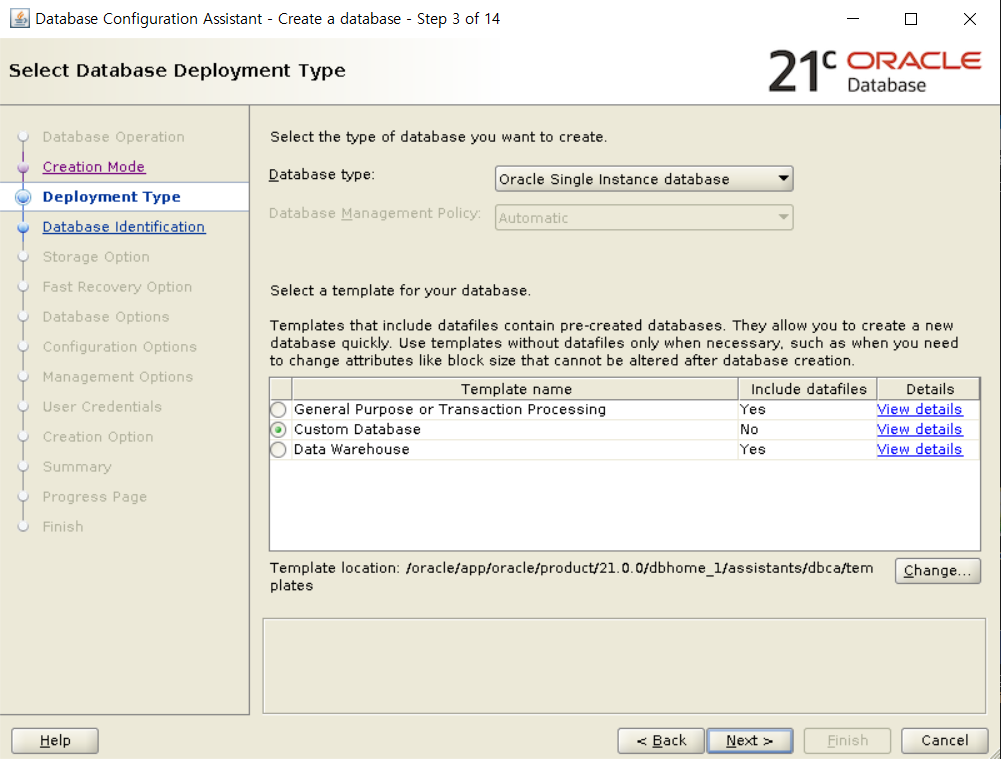 [ORA21C]oracle@:/oracle/app/oracle/product/21.0.0/dbhome_1/bin# ./orabaseconfig