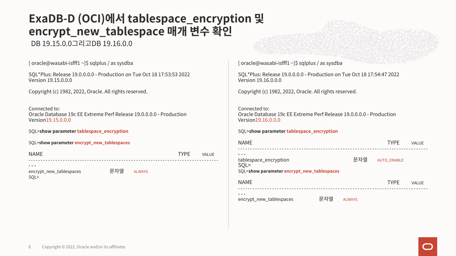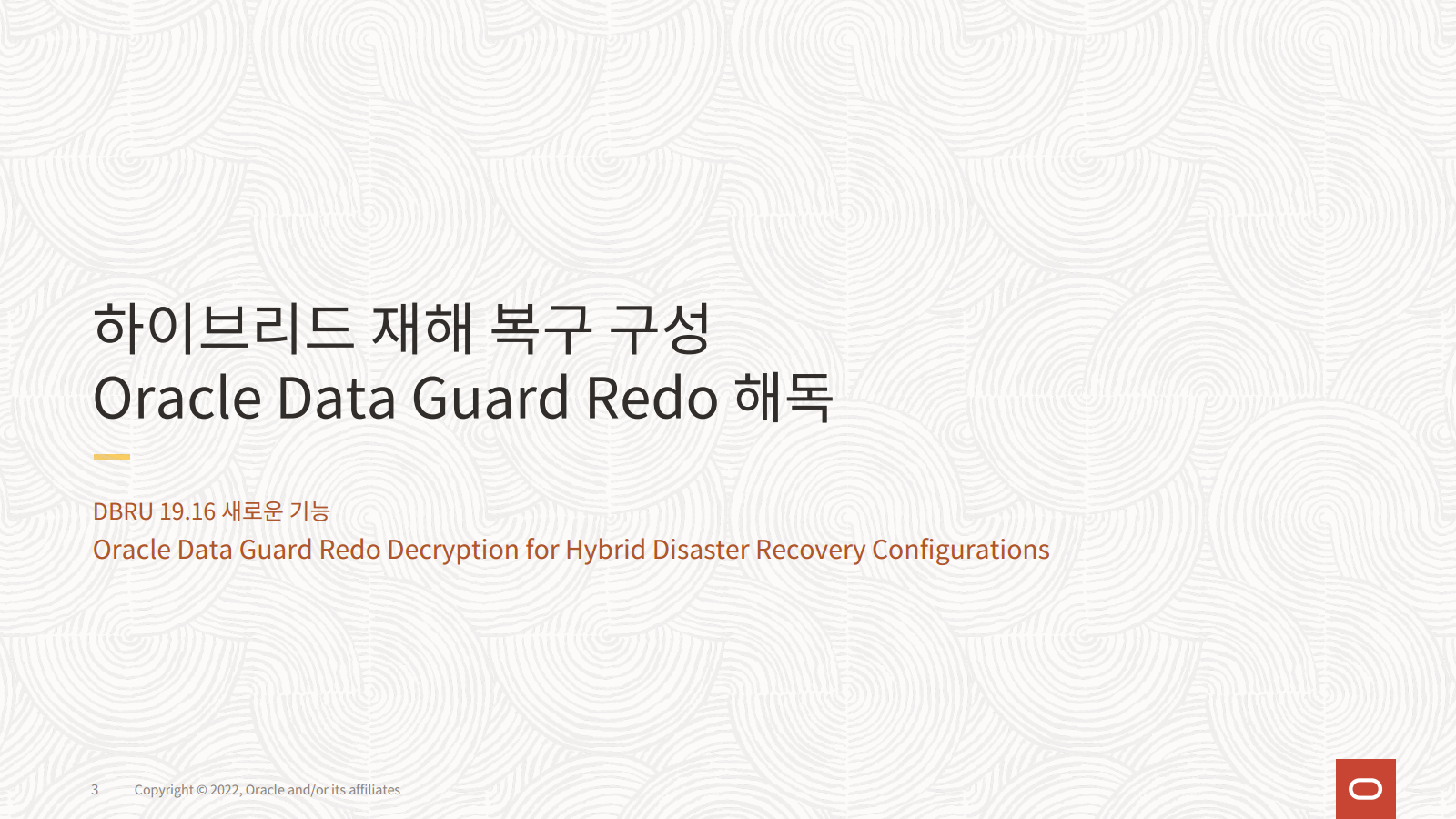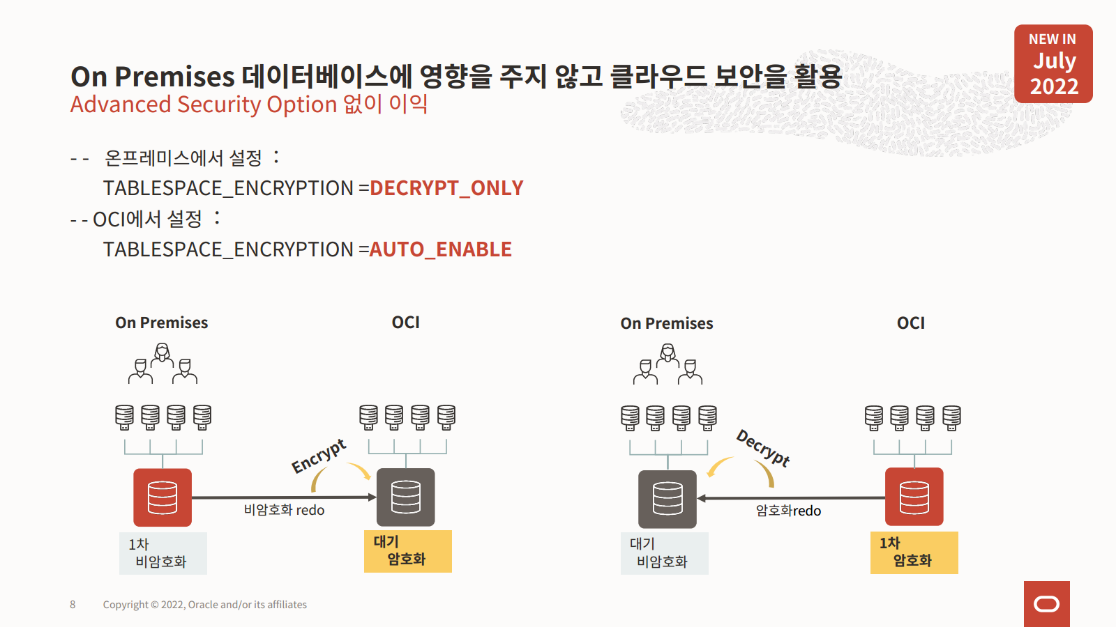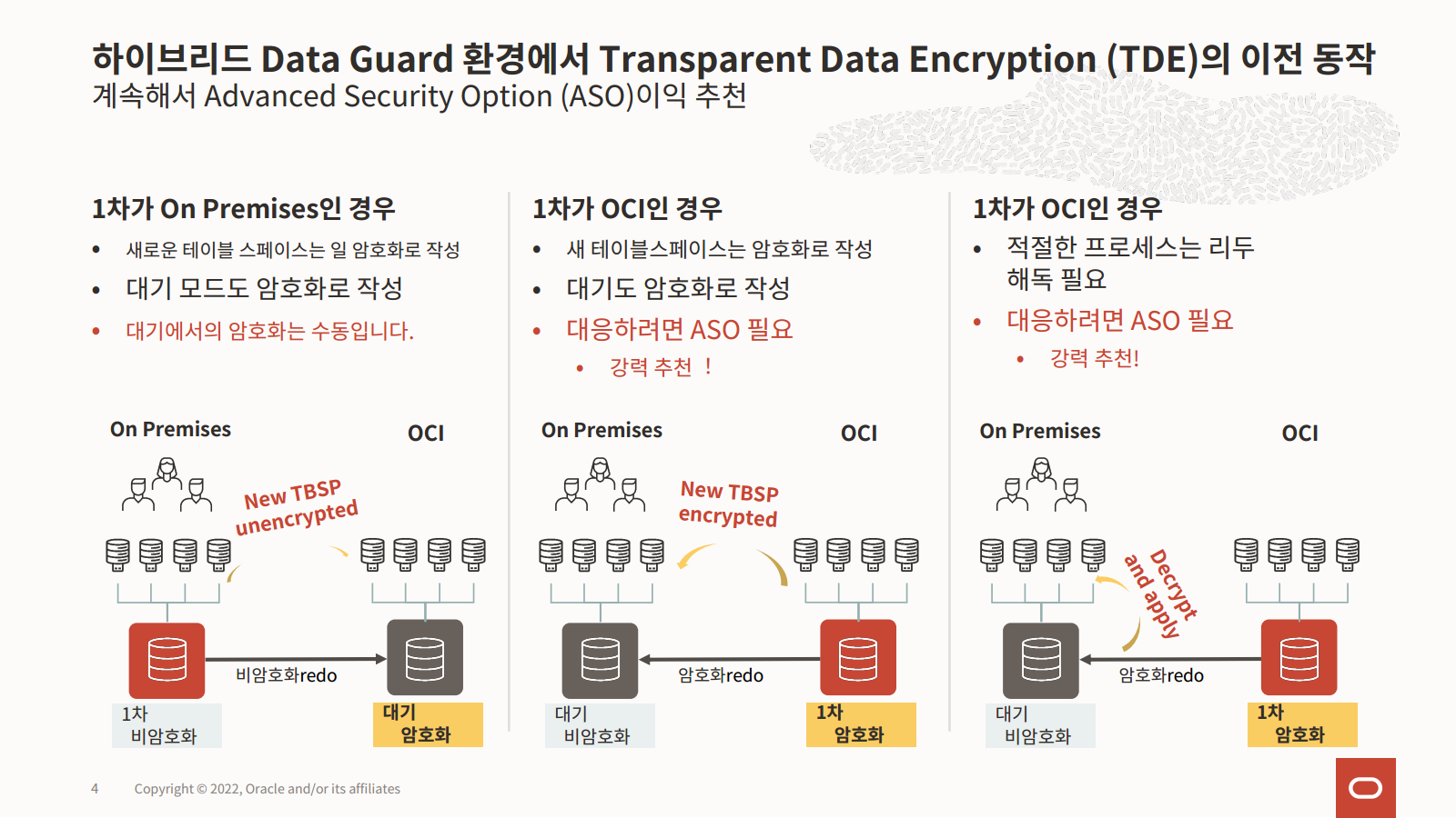 Hybrid DR환경에서 암호화 선택여부 가능해짐. (19.16 RU 부터 가능한 신기능) <- 2022년 7월 RU 적용필요